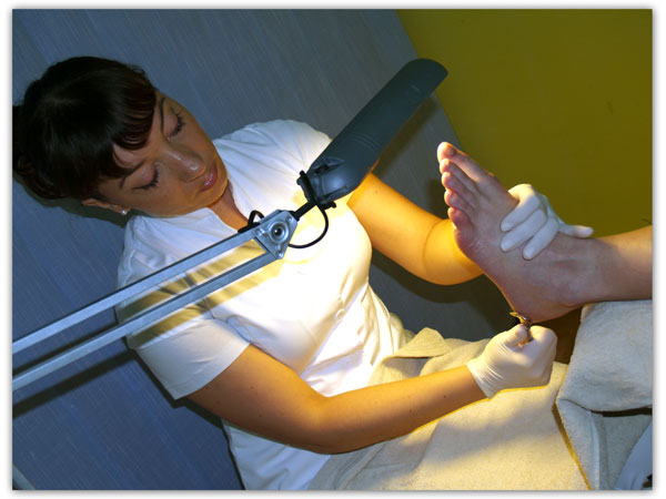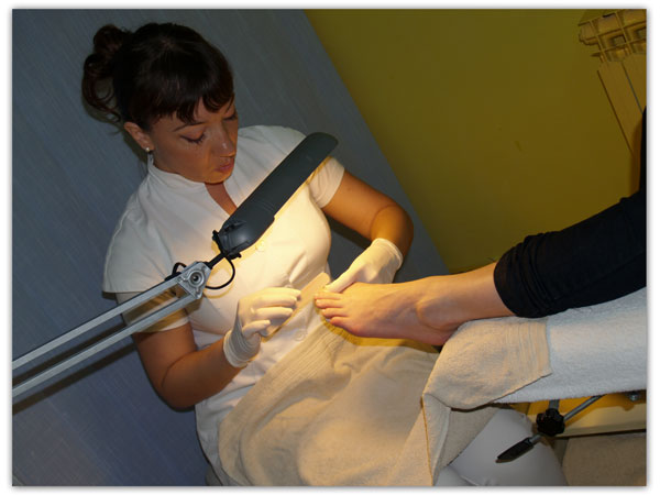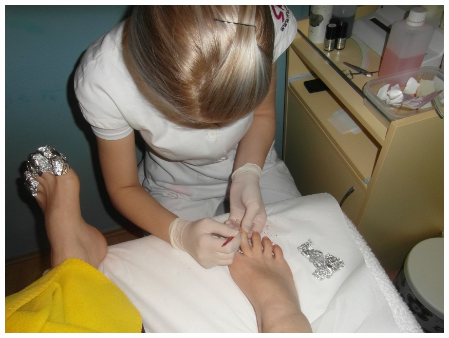 – odstranjuju se natisci, kurije oči, čiste se virusne bradavice, zatim se uređuju nokti te se saniraju eventualni problemi sa uraslim noktima
