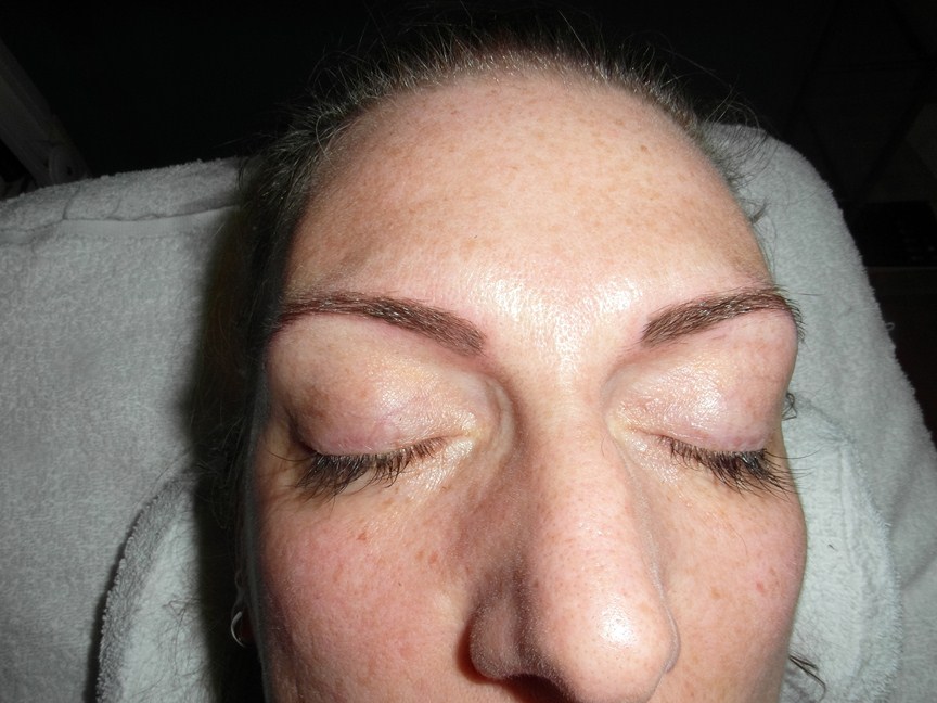 Obrve – kod rijetkih obrva trajnom šminkom dobivamo ispunjenost i prirodni izgled gustoće jer se radi tehnikom iscrtavanja dlačica. U mogućnosti smo korigirati sve nepravilnosti npr. produžiti obrvu ili vizualno podići kapak na način da srednju točku obrve povisimo. Trajanje tretmana sat vremena. Garancija postignutog efekta je 2 – 3 godina.